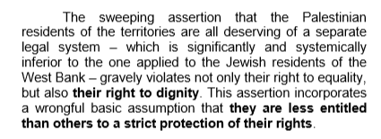 in the following we would like to present you a couple of quotations from the following report written by ACRI, the Association for Civil Rights in Israel.