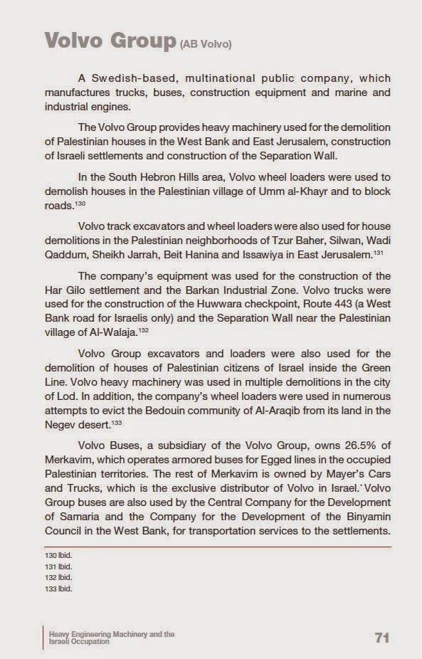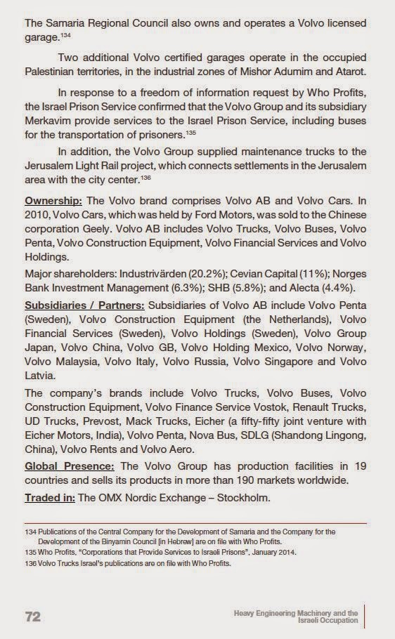 Anbei die Details und die Fakten im Bericht von WHO PROFITS….. über VOLVO in ISRAEL und in den besetzten Gebieten.